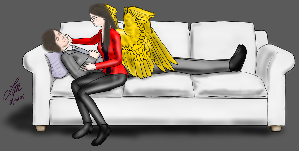 What's My Name -- [1/27/25] -- At some point in "In the Quiet After", AL is going to confront Poul's boss (depicted here as a Danganronpa antagonist because I don't think I have any media where the individual is described) about the poor quality of care Poul received (or didn't receive...) after returning from the sandminer attack in "Robots of Death" and the fact that the Company covered everything up. I'm not sure if her wings are going to be visible in this scene as I haven't written it yet so here's the version with her wings transparent (ie invisible). The title of the image and AL's line comes from "What's My Name (Red Version)" from Descendants: The Rise of Red. It's a bop.