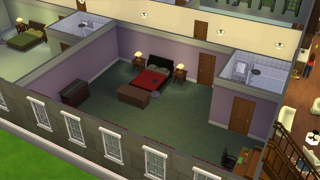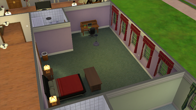 This is an older screenshot as Lisa's room is less red now. The rest of the rooms are empty, ready for whichever one of her romantic partners show up. Though the room starts at the soothing green colors, they will decorate that room however they want as it is theirs to keep forever.